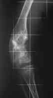 Уважаемые коллеги! Девочка, 15 лет. Диагноз: Дисхондроплазия. Варусная деформация дистального метафиза правой бедренной кости; состояние после оперативных вмешательств (1993 и1994 гг.). Деформация правой нижней конечности с 6 месяцев (стала прогрессировать после года, с момента начала ходьбы). Поставлен диагноз болезнь Олье, варусная деформация, укорочение правой нижней конечности на 4,5 см. 1993 г. - операция остеоклазия на уровне очагов поражения в н/3 правой бедренной кости и в/3 правой большеберцовой кости с одномоментной коррекцией деформации и фиксацией костных фрагментов спицами Киршнера.После начала статической нагрузки (1994 г.) появился рецидив деформации и укорочения. Вторая операция - ЧКО АВФ, аппарат демонтирован через 2недели в связи с развившимся на уровне стержня переломом, после чего находилась в гипсовой повязке до консолидации костных фрагментов. Далеелечилась консервативно в гипсовой повязке. Выраженная деформация и укорочение правой нижней конечности. Относительная длина бедер: справа -34 см, слева - 51 см; анатомическая длина голеней: справа - 29 см, слева - 39 см. Величина варусной деформации на уровне дистального отдела правого бедра составляет - 80 град. Амплитуда движений в коленных суставах (разгибание/сгибание ): справа - 0/0/100 град.; слева - 0/0/30 град. Отмечается боковая и ротационная нестабильность на уровне правого коленного сустава. Амплитуда движений в голеностопных суставах - в норме. Тактика лечения? Заранее благодарю! С уважением,А.В.Владзимирский