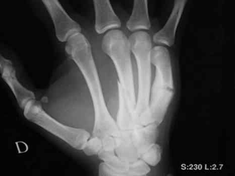 Планируется выполнить остеосинтез III и V пястной кости мини-аппаратом РНЦ "ВТО", срок фиксации 1 - 1,5 месяца.Гарантируется полное восстановление размеров и формы пястных костей, при соответствующем ЛФК - функции.