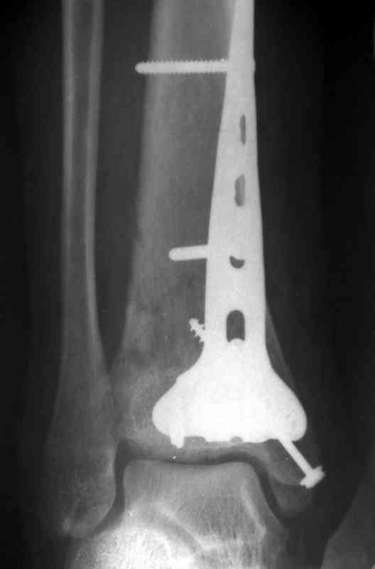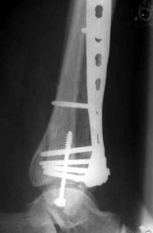 Кстати, при переломах переднего края по классификации АО В-3 при переломах пилона пластина укладывается по передней поверхности. Она достаточно тонкая и эластичная, не надо этого бояться. Посылаю три снимка.