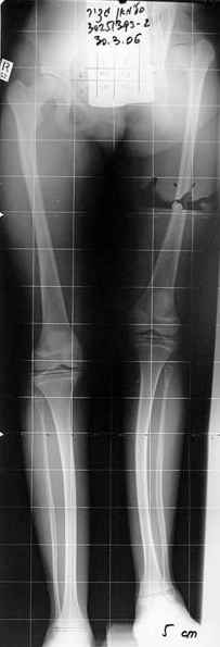 Пациент из сельской местности, школьник, ожирение 2-3 ст. Четкого мнения по поводу дальнейшего лечения у него и родителей нет, но надеются на возможность ходьбы. В течение всего периода с момента травмы ногу не нагружал. В настоящее время передвигается с одним костылем с компенсацией укорочения в обуви. Нейропатия седалищного нерва сохраняется на одном уровне (в основном за счет малоберцового н.). Активное сгибание колена 180-110, поднимает прямую ногу. Болей в тазобедренном суставе нет.