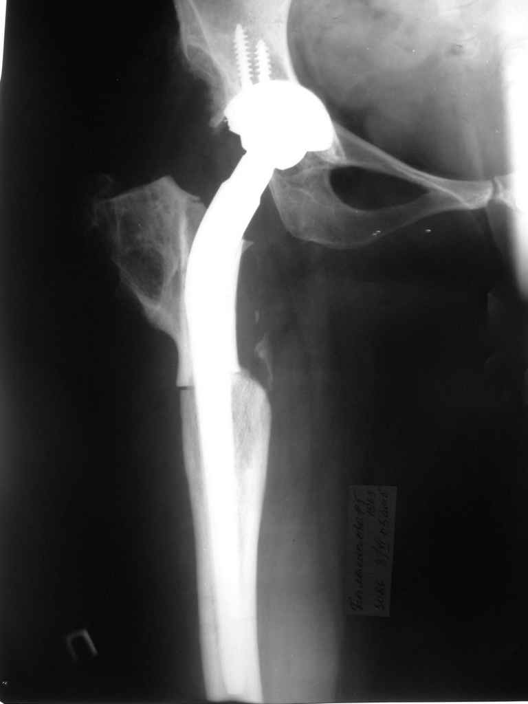 доволен всю свою жизнь. В то же время большинство реконструкций проксимального отдела бедра создает большие сложности при последующем протезировании. К сожалению, нам неизвестен общий статус пациента, его потребности и возможности. Возможно, что артродез был бы все-таки предпочтительнее. Но в любом случае, протезировать этого больного явно