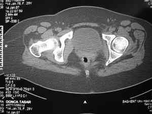 30 years age female MVA front seat, head trauma + post column left acetabular fracture, 2.5 weeks skeletal traction. She is now conscious but still confused without any surgical treatment for