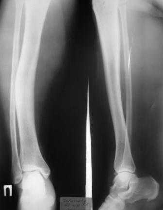Обследовалась в поликлинике с DS: хронический гематогенный остеомиелит. 23.09.2006. травма – упала на левую нижнюю конечность – госпитализирована в ЦРБ, откуда направлена в областной онкологический диспансер. В ООД обследование: 09.11.2006. операция: инсцизионная биопсия опухоли левой б/берцовой кости. Взято 3 куска по 2.0 см. Заключение гистолога: присланы скудные биоптаты из опухоли левой б/берцовой кости в виде мелких фрагментов размерами 0.2 х 0.5 см, с наличием костных фрагментов губчатого вида и мягкотканных кусочков. При исследовании: иррегулярные костные балки обычной архитектоники без атипии остеоида, лежат изолированно друг от друга, между ними зрелая клеточно-волокнистая фиброзная ткань. В прилежащей клетчатке очаги отложения солей кальция, мелкоочаговые кровоизлияния. Более всего можно думать о фиброзной дисплазии. Направлена для дальнейшего лечения в наше отделение У нас обследование: гаммасцинтиграфия – очаги скопления препарата в левой б/берцовой кости, 8 ребре слева. Данных за б-нь Педжета нет. Рентгенограммы: -Краниография – без патологии. -Рентгенография грудной клетки – без патологии. - правая голень – варусная деформация диафиза б/берцовой кости. После обсуждения пациентки к единому мнению по тактике лечения данной пациентки прийти не удалось. Может быть кто-то сможет поделиться своим опытом или мыслями по данному поводу?