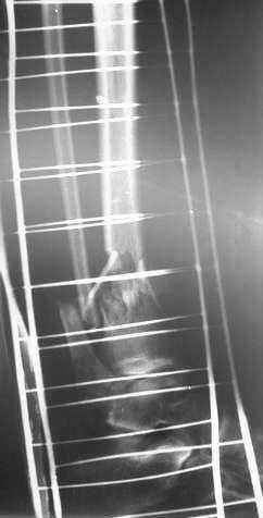 Произведено ПХО, acute shortening (5 см), фиксация стержневым аппаратом Hoffman.