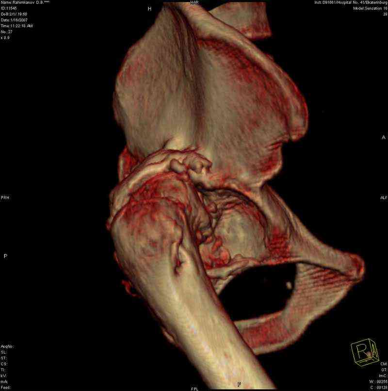 Травма год назад, вместо синтеза заднего края казахскими умельцами установлена клинковая пластина, через 6 мес удалена. Больной ходит с тростью,сгибание в т-б 90, разгибание 170, укорочение 5 см, боли не выражены, анальгетиками не пользуется. Настроен на эндопротезирование в клинике, где есть опыт подобных операций (возможно за рубежом).