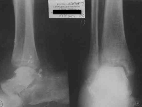 осложненный гнойным артритом голеностопного сустава (по снимку не понятно, что это - фистулография или простая рентгенограмма-