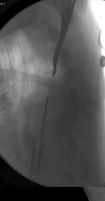 При первичном осмотре в поликлинике через 3 недели обнаружили миграцию двух спиц, срочно госпитализированному на второй день перед операцией на всякий случай сделали снимок, одна спица находилась под ключицей в шейном отделе (на снимке).