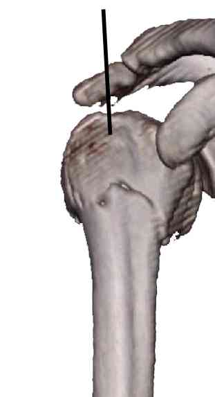 Да, мы делаем такие снимки ... для определения ширины суставной щели и исключения краевых переломов площадки, плоскость суставной площадки лопатки проецируется в такой проекции как линия. Верно?