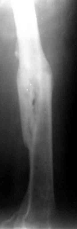 Больная начала давать нагрузку на конечность через 4 мес после операции (в месте перелома