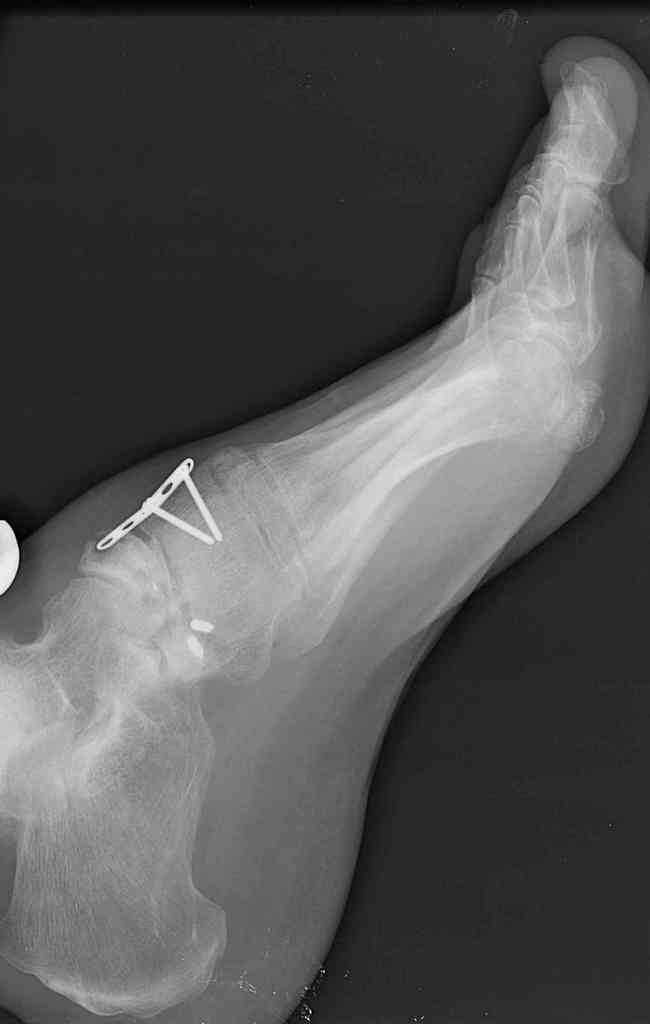 This is a 44 year old male laborer, smoker, who had his foot caught in a forklift about a year ago. I haven't found much literature on salvage for this. What next? Iliac crest graft for structure with talo-navicular-cuneiform arthrodesis to restore the medial column? Will this fuse as an isolated procedure and given the loss of most of his subtalar motion, would a talocalcaneal arthrodesis improve his chances of fusion? Thanks Jeff Richmond Division of Orthopaedic Trauma North Shore University Hospital Manahsset, NY < | >