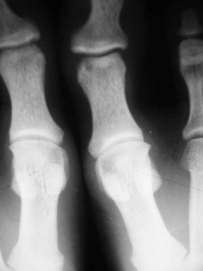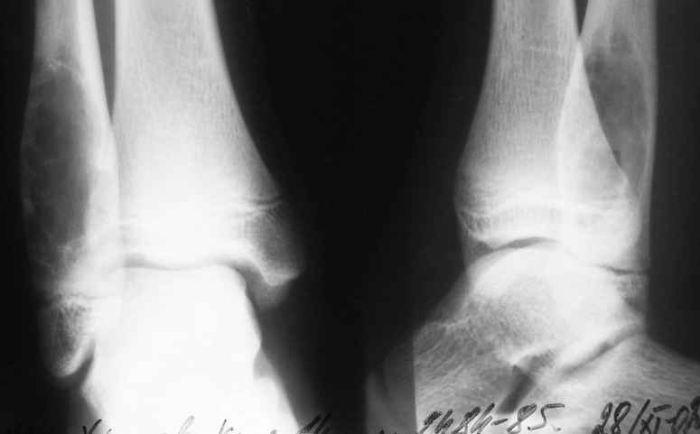 1-Пациент Х.18лет, аневризмальная костная киста малоберцовой кости и основной фаланги I пальца левой стопы (Рис. 1,2).