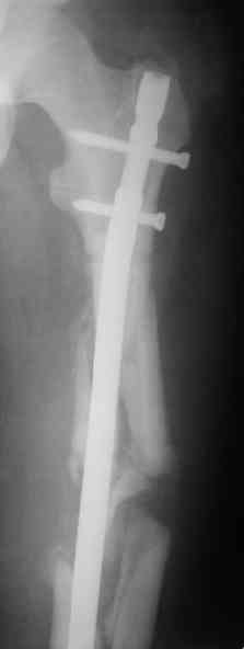 "Судя по уровню перелома, винты в шейку избыточны, подойдет и диафизарный гвоздь. Все, что нужно, это тиски и труба. Загнуть сразу ниже отверстий градусов на 8-10, и вся недолга. Последние годы у нас это рутинная практика. Предызогнутые еще с завода гвозди неудобны тем, что они уже правый-левый."