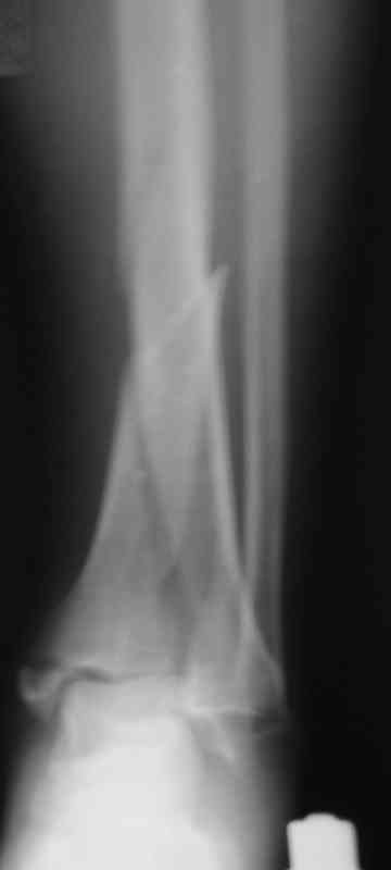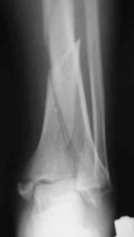 Судя по снимкам (спиральный перелом диафиза продолжающийся до сустава, отрывной перелом внутренней лодыжки) механизм перелома - скручивание. Стоит сделать снимок на всю голень включая коленный сустав и поискать проксимальный перелом м.берцовой кости. Такие переломы сопровождаются разрывом межкостной мембраны и поэтому нестабильны, повреждение м.т.