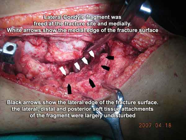 Freed up the non-union site with minimal disturbance to the posterior and lateral soft tissue attachments on the lateral condyle fragment.