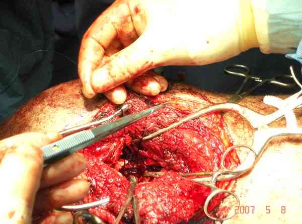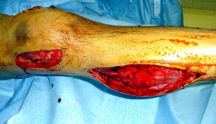 илио-тибиального тракта, а медиальная сторона была ушита мышцей, и все раны закрыли ваккумированием (VAC)