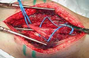 илио-тибиального тракта, а медиальная сторона была ушита мышцей, и все раны закрыли ваккумированием (VAC)