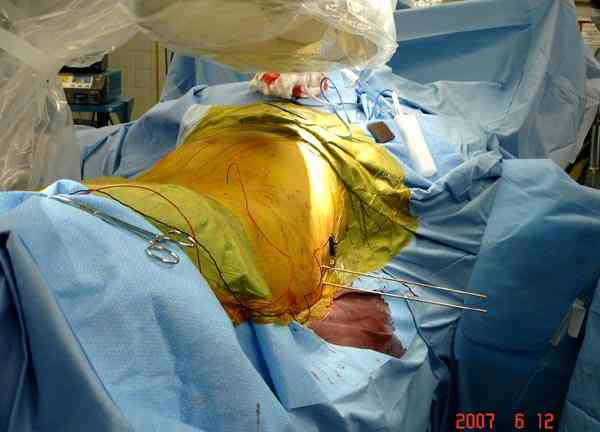 Применение длинных (7 мм каннюлированных, с резбой на всем протяжении от компании Mercury) шурупов, проведенных между двумя илиосакральными сочленениями нейтрализирует деформацию до наступления сращения.
