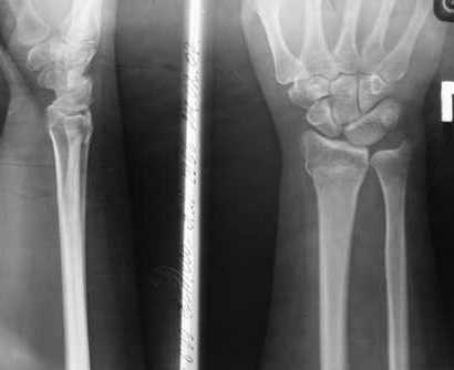Видимо там был оскольчатый перелом луча и шиловидного отростка