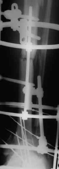 Александр! Обьясни, почему удлинение не сделать монолокально на уровне дистального метаэпифиза? Ведь укорочение небольшое и голеностопный сустав все равно фиксирован. Как то не симпатично выколот диафиз.
