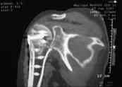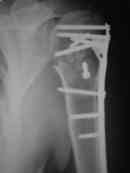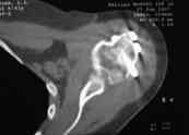 Уважаемые коллеги,На консультативный прием обратилась женщина 42 лет, получившая 1.04.2007 бытовую травму: В момент осмотра: нормостеническая конституция, по передней поверхности плечевого сустава – рубец. Рука в положении приведения. Отведение не более 10 град, дальнейшие движения с лопаткой до 20-25 град. Амплитуда сгибания-разгибания 10-15 град. Ротация отсутствует. Пальпаторно - выраженная болезненность над суставом, особенно в проекции клювовидного отростка. При попытках пассивных движений – боль. Рентгенограммы и результаты КТ приложены(b2(3)_xr.jpg, b1(6)_ct.jpg). Диагноз: неправильно сросшийся в условиях накостного остеосинтеза оскольчатый перелом головки левой плечевой кости (11-С3.2), асептический некроз головки плечевой кости, смешанная артро-миогенная контрактура левого плечевого сустава; демиелинизирующая нейропатия левого локтевого нерва. До травмы пациентка вела активный образ жизни, к которому хотела бы вернуться и теперь. Анализ ситуации позволяет считать, что основными причинами контрактуры являются неправильная репозиция фрагментов головки (разворот кверху и кзади), асептический некроз головки плечевой кости (отчетливое склерозирование на СТ). Альтернативные предложения для лечения (в порядке убывания вероятности успеха): 1. Удаление металлоконструкции, эндопротезирование. 2. Сохранение металлоконструкции с удалением выступающих за пределы головки винтов, релиз сустава, заполнение дефекта (b5_ct.jpg) на стыке метафиза и головки аутотрансплантатом для устранения «триггера», ранняя реабилитация. 3. Удаление металлоконструкции, релиз, ранняя реабилитация. С благодарностью примем критику предложенного плана и Ваши предложения. С уважением к сообществу, Г. Голубев, ортопедическое отделение МЛПУЗ «Городская больница №1 им. Н.А. Семашко», г. Ростов-на-Дону < | >