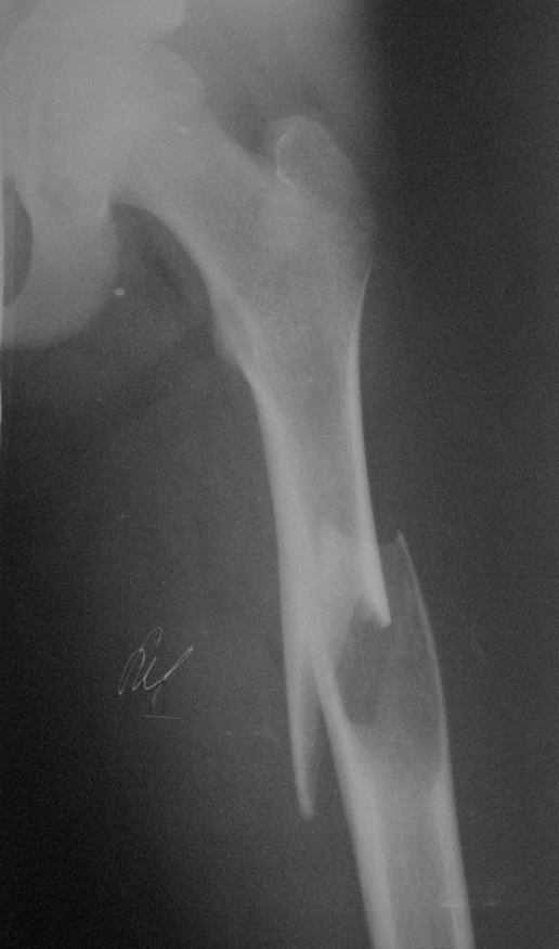 По неотложке в наше отделение попал мальчик 13 л. с патологическим переломом бедра.