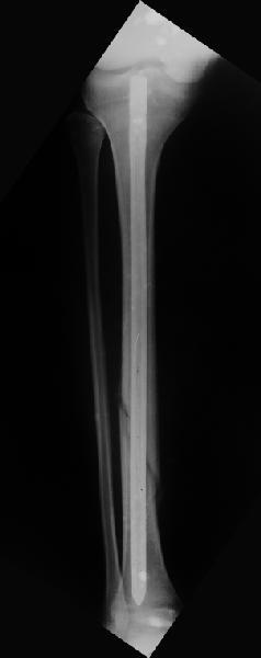 из Дорогие коллеги, Вчера первый раз синтезировали голень гвоздем Fixion. Спиральный оскольчатый перелом, ниже середины, у молодого парня. Сделали "классический" вариант гвоздя, который еще без винтов. Получилось все легко. Не торопясь, сделали операцию минут за 20. См. фото.