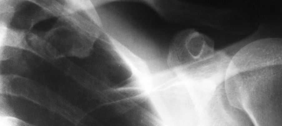 Об-но:пастозность в левой подключичной области,боли при пальпации там же,кожные покровы физиологической окраски.При осмотре плечевого сустава -клиника плечелопаточного периартрита. Приношу извинения за качество рентгенограммы