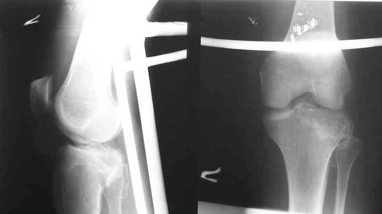 Скорее всего у Вашего пациента Бикондилярный перелом проксимальной тибии с депрессией латерального тибиального плато.