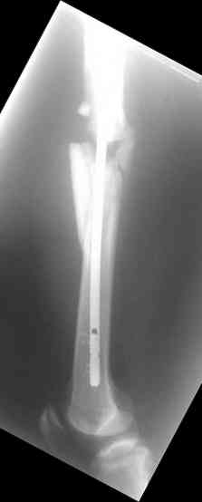 Про "кролика", конечно, не очень хорошо с точки зрения деонтологии. Но коллега, Вы думаете кто-нибудь из заядлых Nailer- ов оценит положительно этот остеосинтез? Возможно, на то были объективные причины: отсутствие штифтов большего диаметра..., штифтов, позволяющих блокировать более толстыми винтами..? А уж Plater-ы, конечено засмеют.