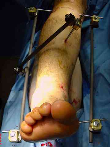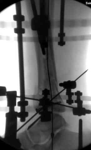 структуральными элементами невозможно предохраниться от посттравматической деформации. Латеральная колонна удерживается малоберцовой поэтому голень деформируется в варус.