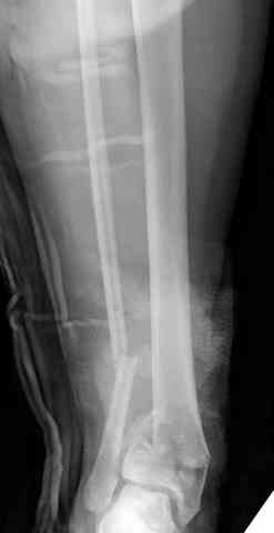 Первичная пластина или интрамедуллярный фиксатор на малоберцовую зависит от характера перелома, косые и многооскольчатые пластинами, а поперечных можно интрамедуллярными фиксаторами. Восстановленная длина малоберцовой служит ориентиром и помогает определению высоты большеберцовой во время восстановления.
