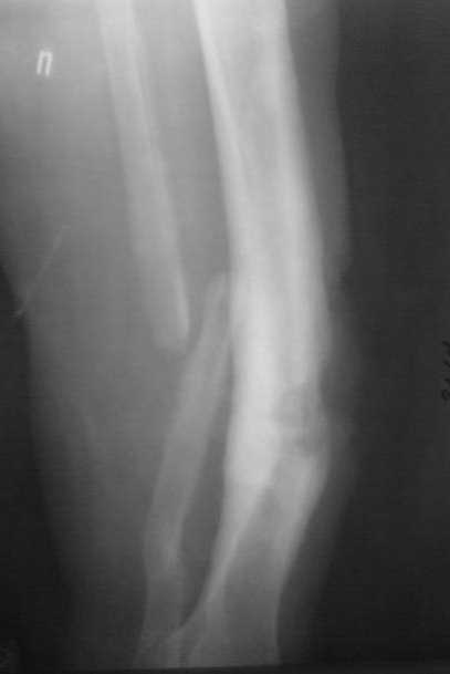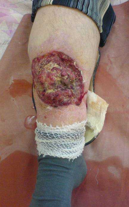 Сегодня принял больную, женщина 51 года.Травма автодорожная 13 лет назад. Тогда же - остеосинтез левого бедра стержнем (сращение); ампутация левой голени на уровне с/3 (опротезирована); открытый перелом с/3 костей правой голени (лечение в аппарате Илизарова). Три года назад появился свищ на передней поверхности голени, лечилась нерегулярно и на сегодняшний момент вот такая картина. Перед госпитализацией, без назначения врача принимала тетрациклин в течение 10 дней. Взяли посев, заказали дополнительные снимки, перевязка. Правый коленный сустав - движения с полной амплитудой. Частичная нагрузка на правую ногу при ходьбе. Пульсация на a. d. pedis сохранена, стопа теплая. Не температурит. Общее состояние удовлетворительное. Рана с обильным гнойным отделяемым со зловонным запахом на фоне гипергрануляций. Из свища определяю геморрагическое отделяемое. Снимок месячной давности. Фистулография запланирована на след. неделю. Что можно выполнить этой пациентке на уровне районной больницы? Планируем: коррекция оси в аппарате, дебридмент, резекция б/берцовой кости с острой копрессией для закрытия полости с бусами из цемента с а/б. Есть гадкое предчувствие, что "вылезет" MRSA на посеве.Надеюсь на помощь в тактике лечения данной пациентки у опытных коллег.