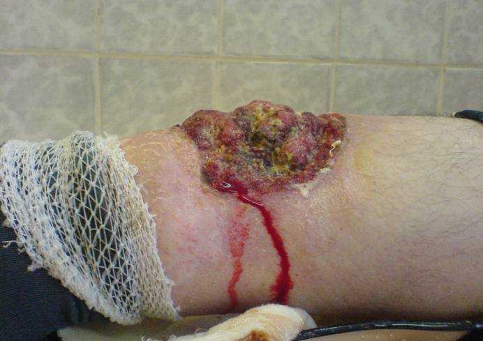 Что рана из себя представляет видно, а что еще за свищ - не очень понятно. Нет ли здесь малигнизации?