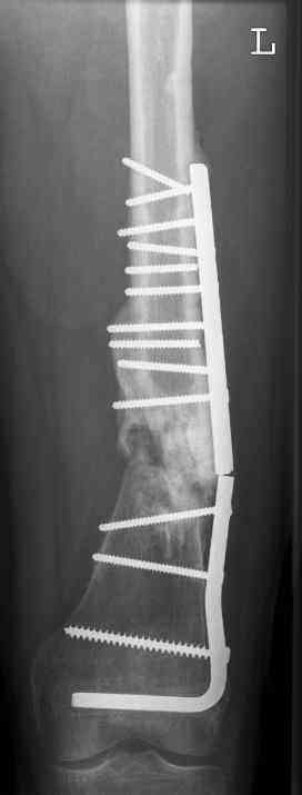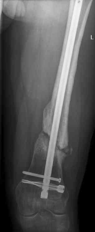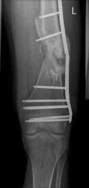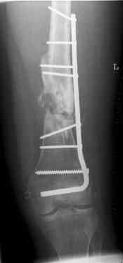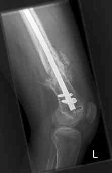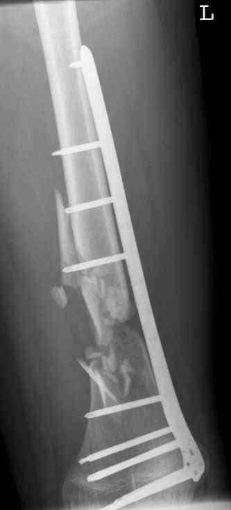 This is a tough case .The poor kid have experienced many surgery and the site of femoral fracture must have bad blood supply. A s a orthopedist , how to fix the fracture is a problem that faced with us . The purpose of re-operation is realization of rigid internal fixation and less aggressive to blood supply.
