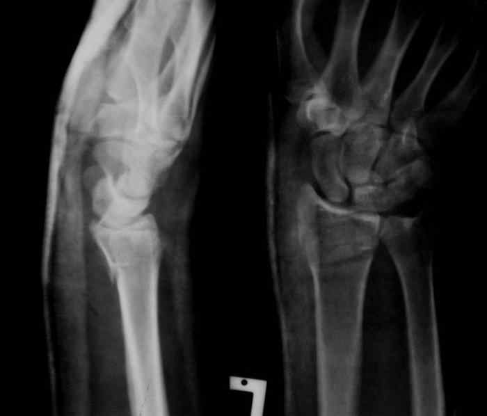 v zavicimocti ot vosmoznoctei. perelom viglidit vne sustava - redukzia + 2-3 kirshnera. proverit posle etogo stabilnost distal radio ulnar joint, ecli ne stab fixatia kirshnerom obichno v polusupinacii.