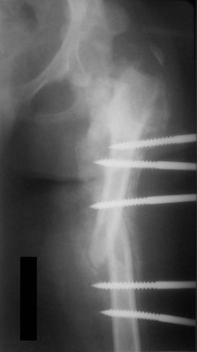 Такая мысль тоже приходила. Не решились, так как:1.Выраженный остеопороз костей таза и бедра, больная тучная - высок риск того, что стержни не выдержат. 2.Сейчас больная передвигается в инвалидном кресле - хоть какая-никакая, а динамизация. Если лишить её этой возможности - застойная пневмония со всеми вытекающими...