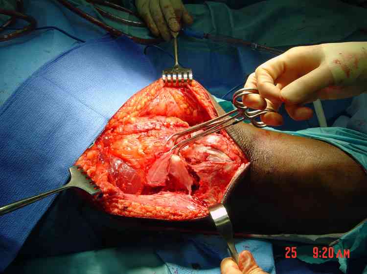 Сначало надо освежить нижний полюс и удалить остаточные кости с образованием культи связки. Без удаления кости в дальнейшем будут болезненные проявления из-за несросшихся фрагментов.