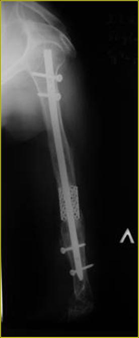 Лечение вторичного ложного сустава плеча особенно в дистальных отделах очень трудная задача. Результат несостоятельного остеосинтеза, приведший к ложному суставу осложнен коротким дистальным склеризированным участком и полным отслоением от мягких ткани в дистальном отделе плеча.