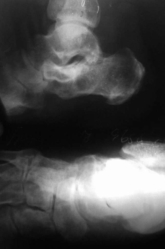 Больной 1964 г.р. С 30.08-по 14.09.07г. лечился в г. Иркутске, в МУЗ Медсанчасть ИАПО с д-зом - Кататравма. З/осколчатый в/с перелом обеих пяточных костей со смещением. З/компр, перелом тела L-2 п-ка 2-степ, неосложненный. Произведено скелетное вытяжение по Каплану, но больной до конца не лечился, от операции отказался, наложена гипсовая лонгетная повязка и выписан.( из выписки и/б ) К нам обратился с жалобами на деформации стопы, боли при ходьбе. Ходит при помощи костылей. Наш план, учитывая наличие подтаранного артроза с болевым синдромом - подтаранный и пяточно-кубовидный артродез с коррекцией варусной деформации.Уважаемые коллеги, помогите советом