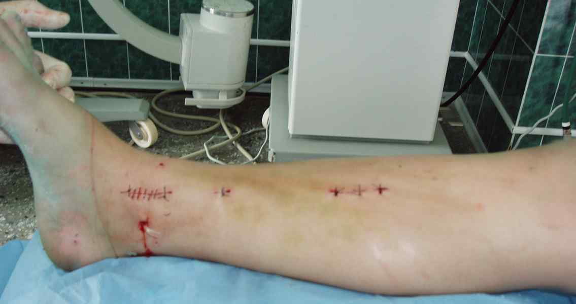 Если есть ЭОП, то перелом подходит для малоинвазивной фиксации. Репозиция суставного отдела (использовать репозиционные щипцы)и его фиксация стягивающими винтами чрезкожно, затем пластина медиально малоинвазивно, лучше метафизарная. Если не располагаете подходящим имплантом или непозволяют мягкие ткани, вполне возможно применить вместо платы Fix.Ex.