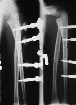 Compact II выпущеный Stryker Howmedica, но за неименеем...), остеотомия проксимального отдела локтевой кости, вправление головки лучевой кости, замыкание аппарата, проверка стабильности головки