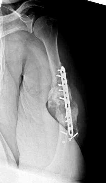 ложного сустава плеча могут быть различными, кто-то предпочитает аппаратом Илизарова (Соломин), пластинами (Волна) или интрамедуллярным гвоздем (Челноков).