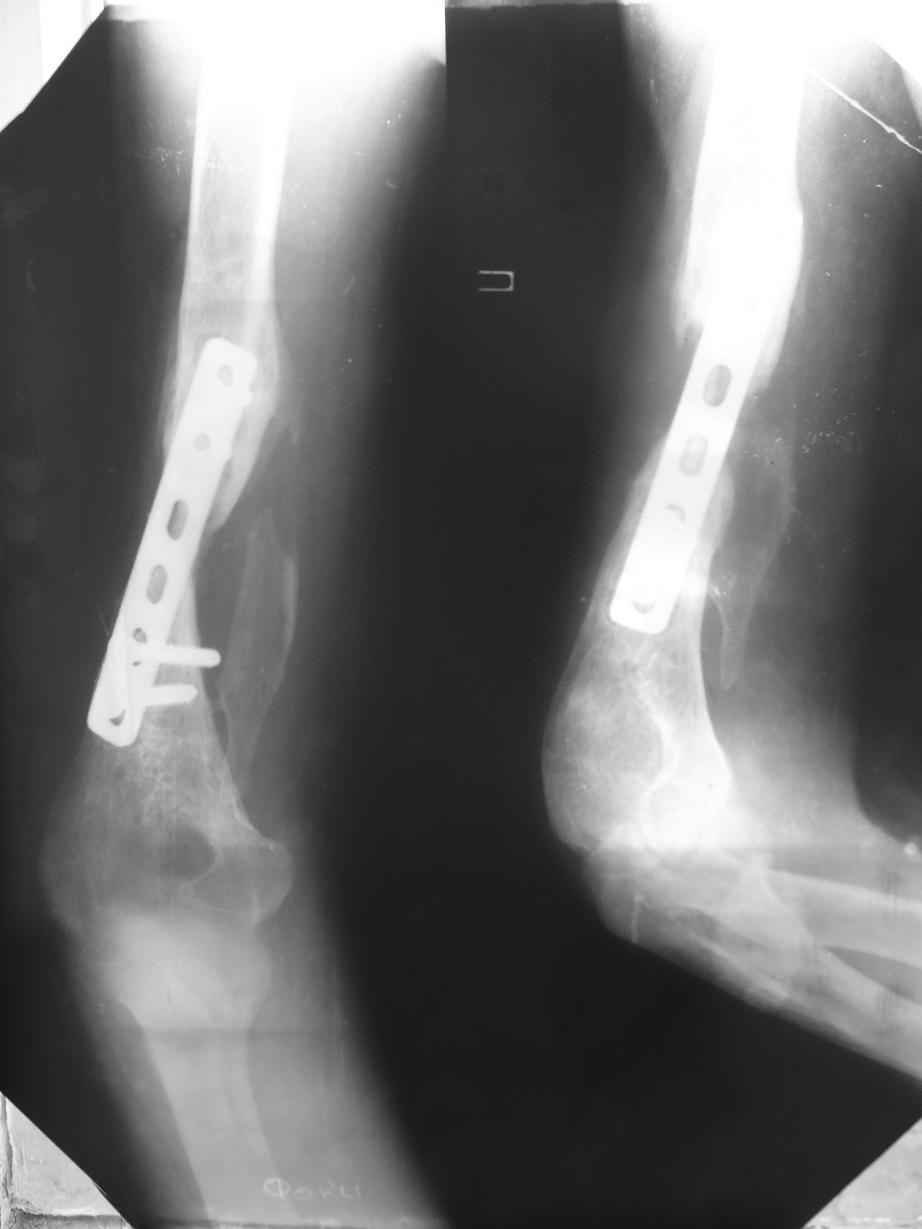 Когда разбирался случай на сайте, и у нас была больная с похожей патологией, ложный сустав после поперечного перелома, леченного год назад где-то и кем-то в другом месте.