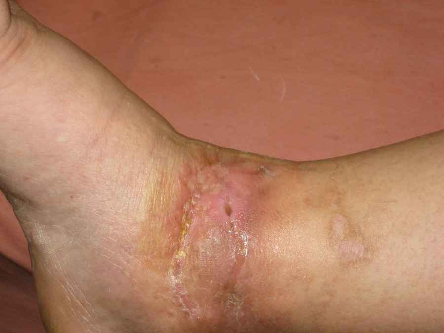 Уважаемые коллеги нужна помощь в определении тактики лечения: Больная Р.,1952 года рождения получила травму 18 августа 2007 года. 31 августа 2007 года была оперирована в другой области по поводу DS Закрытого двухлодыжечного перелома правой голени с подвывихом стопы кнаружи , кзади. Разрыв дистального межберцового синдесмоза. Перелом заднего края большеберцовой кости справа. Поступила в наше отделение со швами ,с некрозом медиальной поверхности правого голеностопного сустава. Проведено : снятие швов , антибиотики , некрэктомия с последующей кожной пластикой .Заживление 20 декабря 2007 года ,выписана из стационара . 3 марта 2008 года поступает с гиперемией , отек , флюктуацией. В настоящее время имеется рана по медиальной поверхности правой голени ,отеки и гиперемия сохраняется .Наша тактика:1) снятия воспалительного процесса, 2) удаление металлоконструкции, 3) выполнения артродеза правого голеностопного сустава.