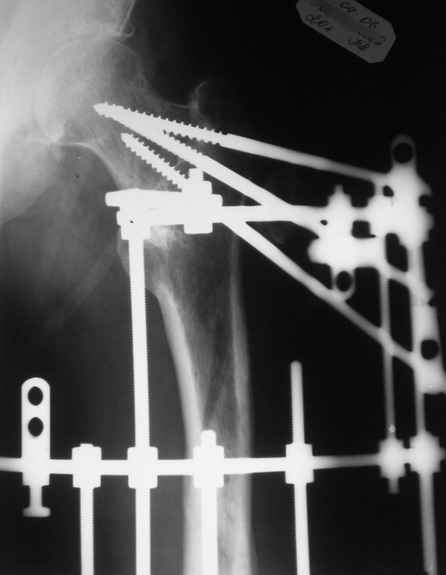 Есть и третий вариант - продолжить лечение в аппарате. Подвести диафиз под культю шейки, завершить репозицию, а там еще раз вернуться к этому вопросу, и может быть, в аппарате все и оставить. Понятно, что это вариант долгий и неудобный во многих отношениях, но, может, тише едешь - дальше будешь?