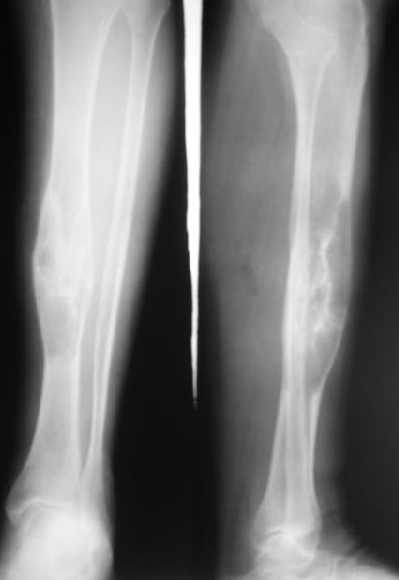 К нашему онкологу-ортопеду обратился больной с жалобами на боли в голени, из рассказа - год назад была сделана биопсия большеберцовой кости, но название заболевания "не запомнил”.