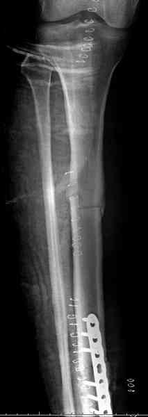 conference мы разбирали похожий случай, ложный сустав большеберцовой кости после резекции опухоли.