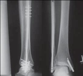 Если и оперировать, то, наверное, целесообразно бы поставить IP-XSL (long nail). И косметический дефект минимальный, и нагрузка сразу и удалять нет особой необходимости.