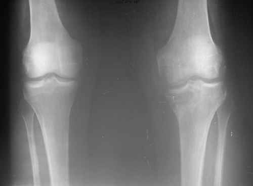 вдогонку - качество снимка -не очень, но похоже на компрессию внутреннего плато большеберцовой кости. Не могу понять, что за деформация по внутренней поверхности внутреннего мыщелка бедра
