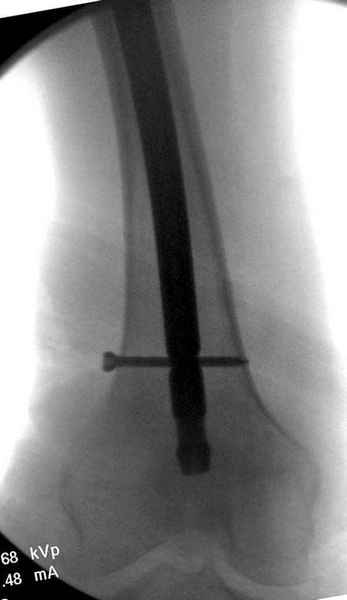 Правильно, ситуация изменилась, как говорят у нас теперь "different animal", надо решать проблему подвертельного перелома. При наличии различных вариантов фиксаторов, включая Страйкер Гамма 3, мы выбрали DePuy Antegrade Trachanteric Nail из-за многовариантности проксимальной фиксации и двойного изгиба. Вводится через вертел под 8 градусным углом, и есть достаточный передний диафизарный изгиб, предупреждающий пенетрацию дистального переднего кортекса.